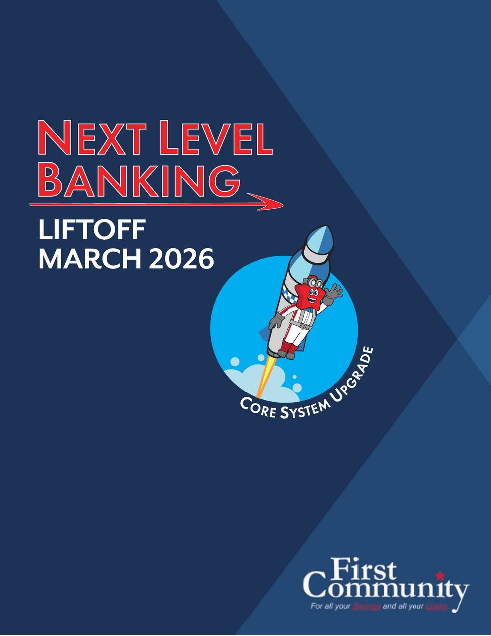 The upgrade will begin Friday evening, March 6th, 2026, after normal business hours. Our system will be updated over the weekend, and branches will be closed Saturday, March 7th through Monday, March 9th.